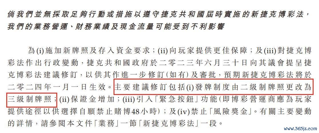 招股说明书中有提到,捷克新博彩法预计在2024年1月1日生效。发牌制度将从二级制牌照变更为三级制牌照,这将增加百乐皇宫失去现有牌照的风险,而博彩业作为典型的牌照业务,一旦牌照失去,业务基本就按下暂停键。